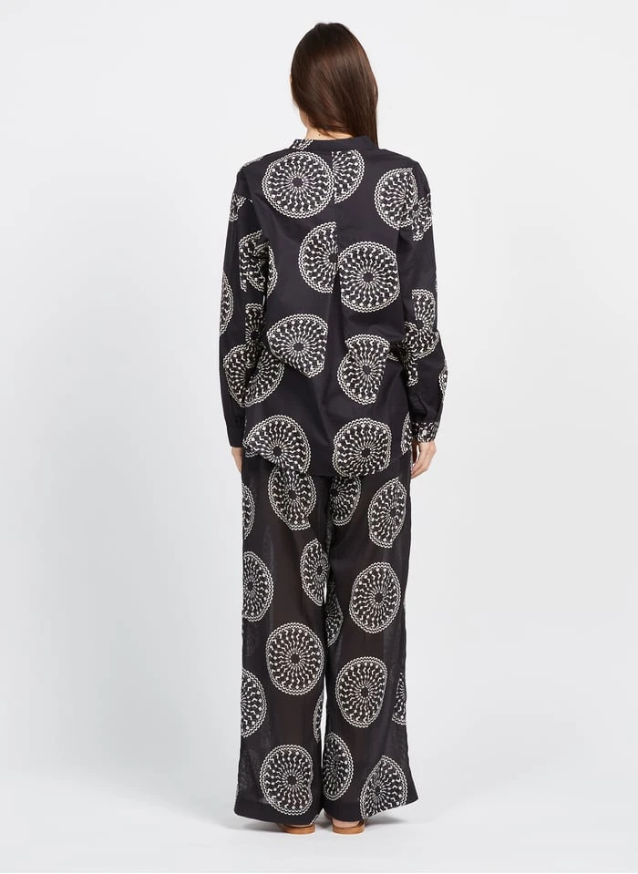 This model is shown wearing Cotton top with mandarin collar by CHLOE STORA