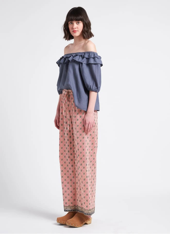 This model is shown wearing Ruffled cotton Bardot top by BA & SH