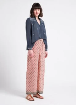 High-waisted wide-leg cotton pants by Maison Hotel for Women.