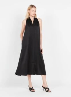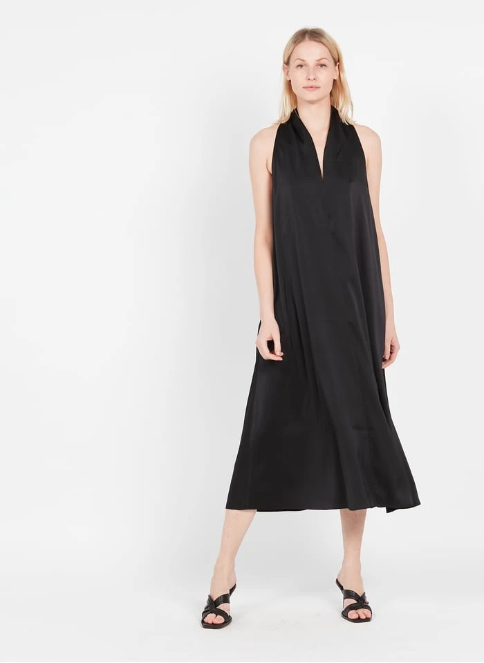 This model is shown wearing Heeled lambskin leather sandals by BA & SH