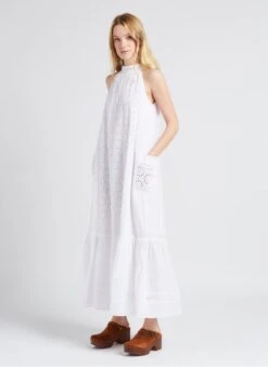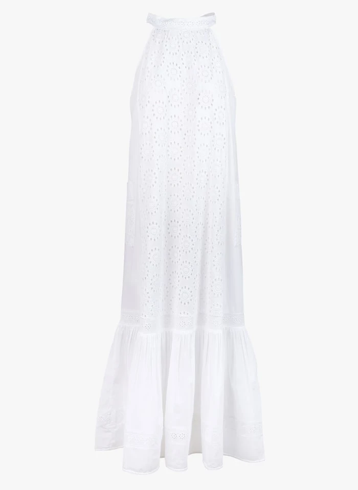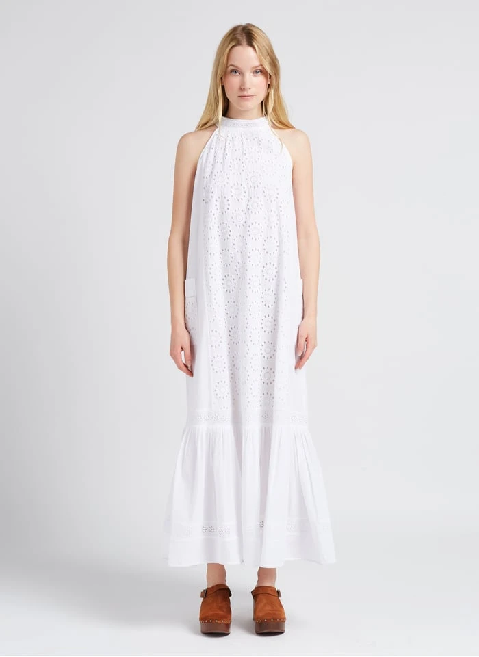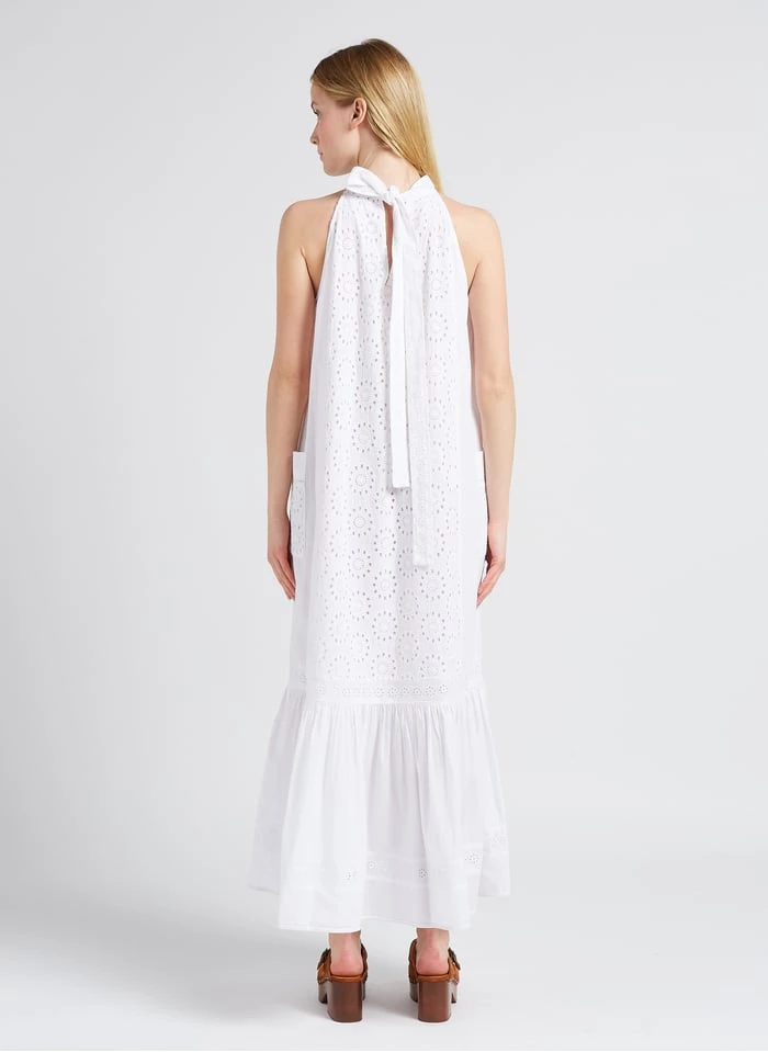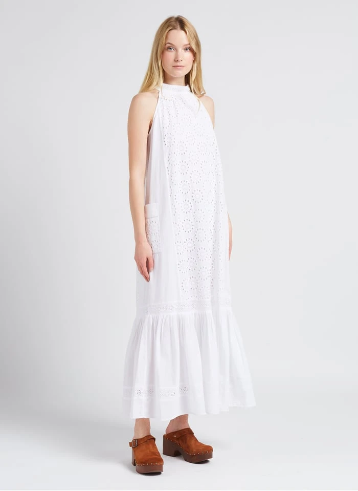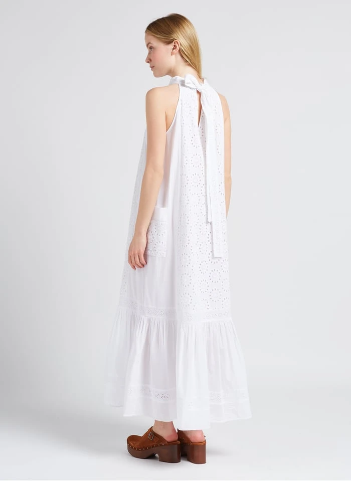 Long embroidered cotton crew-neck dress by Stella Forest for Women.