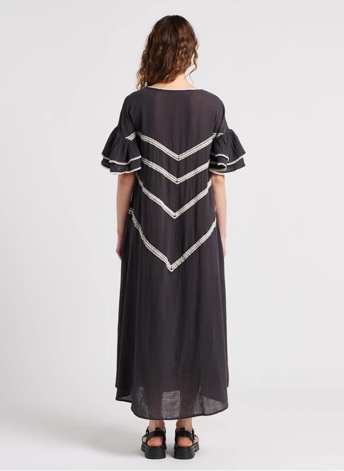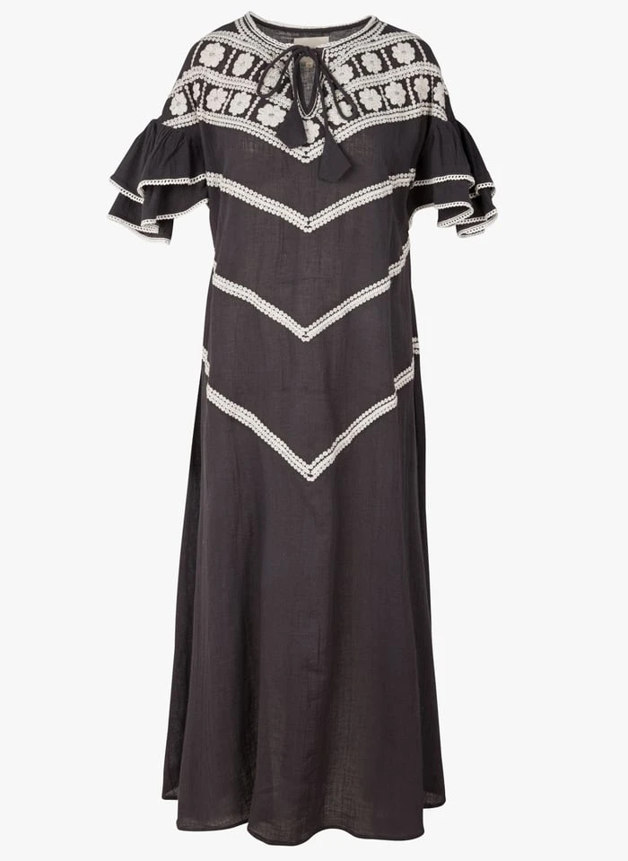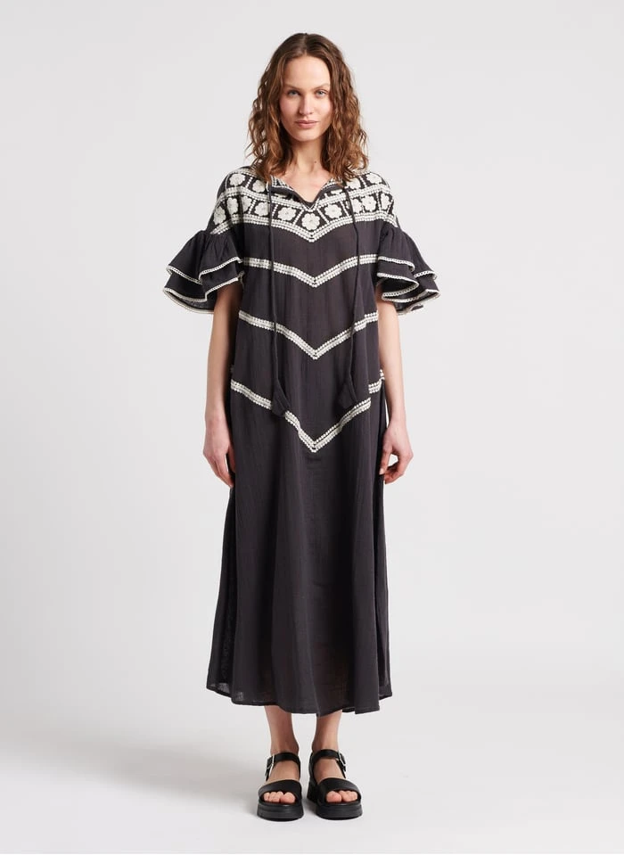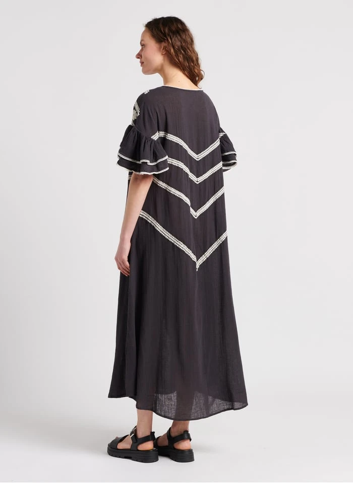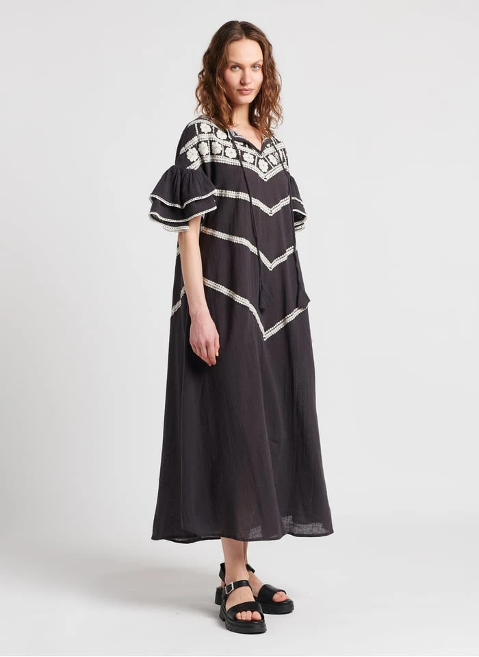 Long loose-fit embroidered cotton henley dress by Stella Forest for Women.