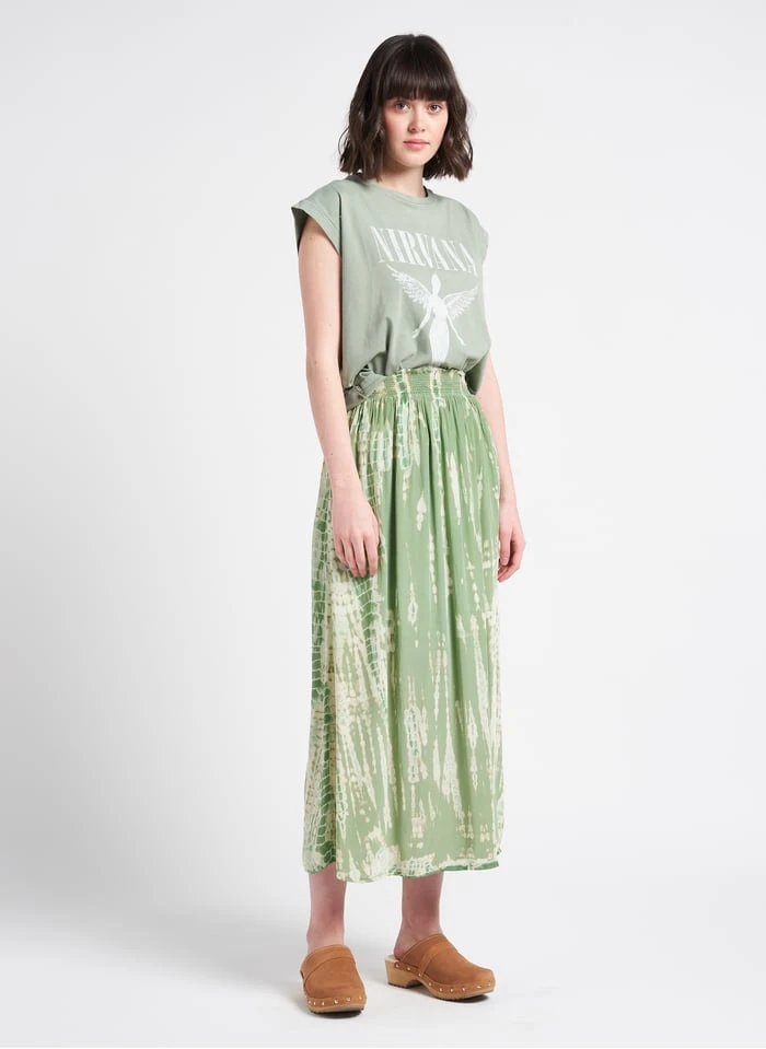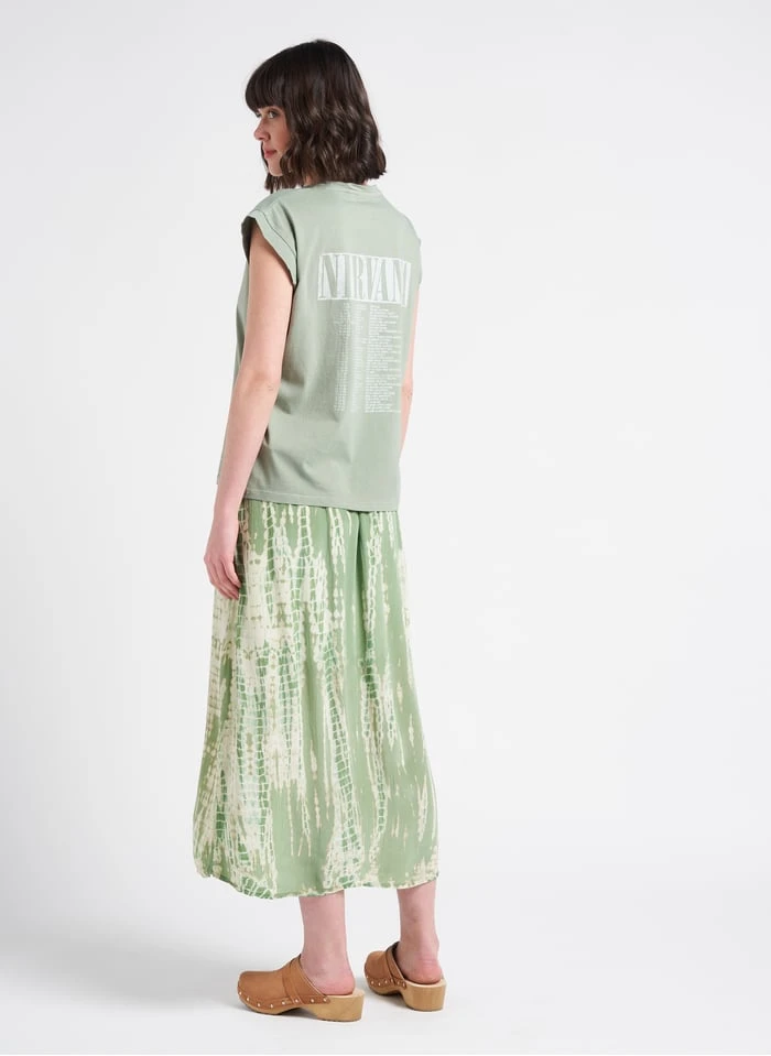 This model is shown wearing Long printed loose-fit skirt by MKT