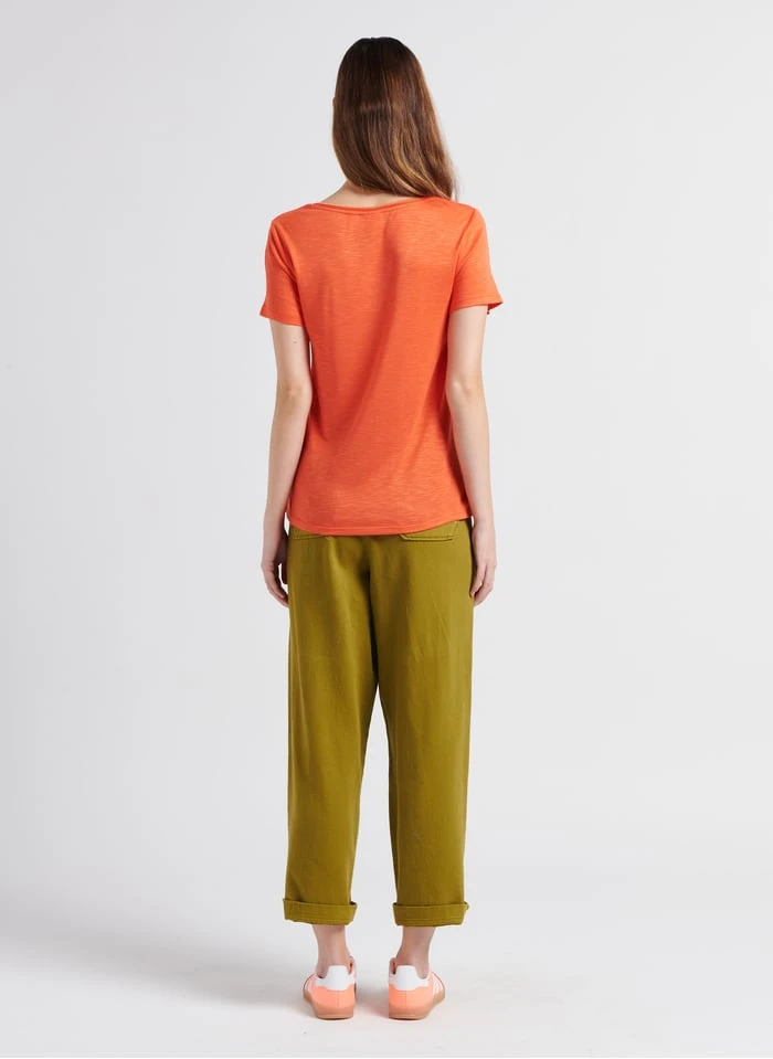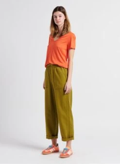 This model is shown wearing Wide-leg cotton pants by HARRIS WILSON