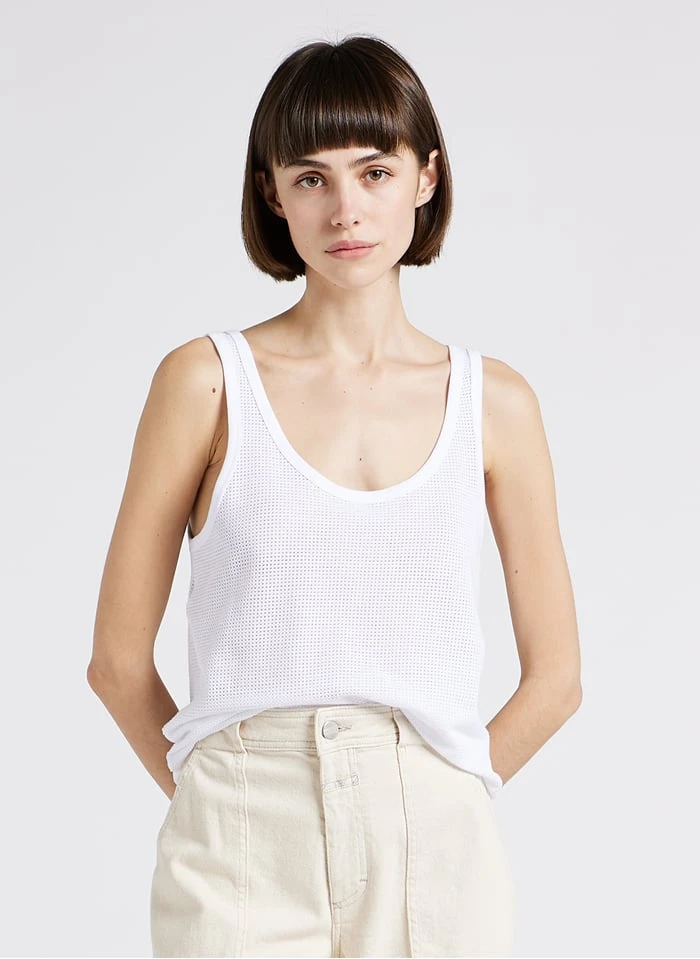 Round-neck openwork knit tank top by Margaux Lonnberg for Women.